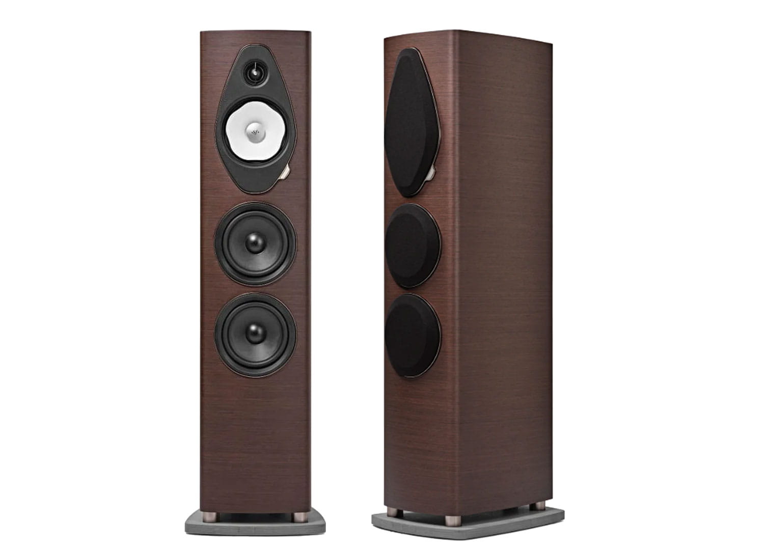 Kształt lutni kolumn głośnikowych to ikoniczny element wzornictwa Sonus faber. Takie rozwiązanie nie tylko dodaje elegancji, ale także optymalizuje rozpraszanie dźwięku, zapewniając wciągające wrażenia słuchowe.