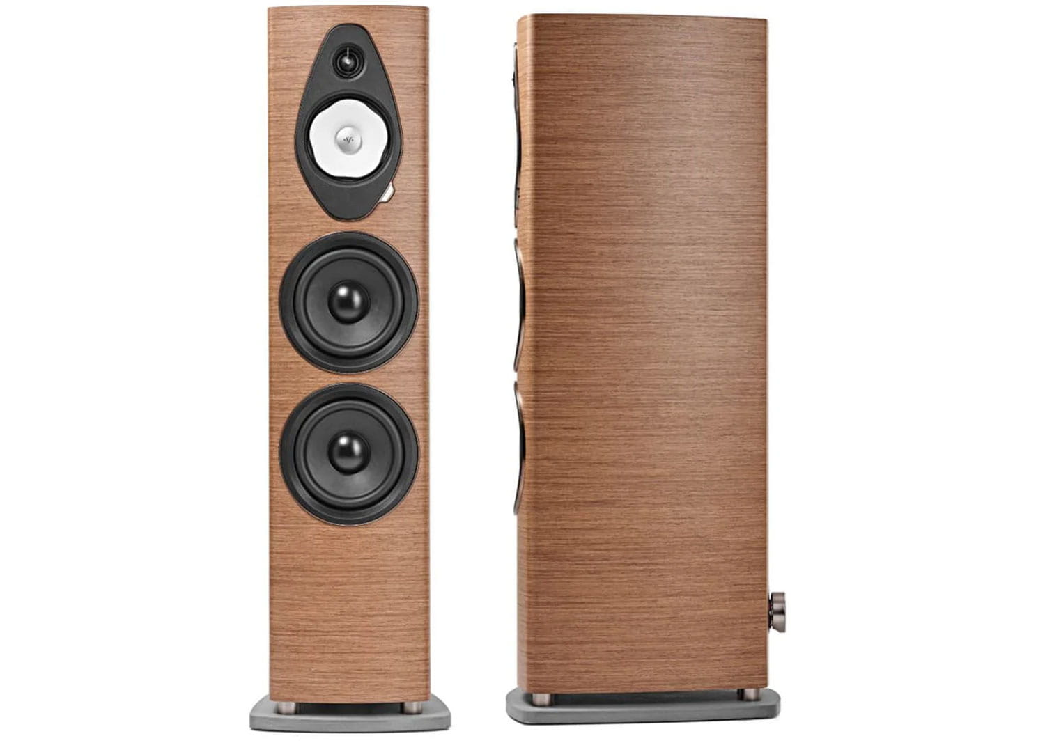 Kształt lutni kolumn głośnikowych to ikoniczny element wzornictwa Sonus faber. Takie rozwiązanie nie tylko dodaje elegancji, ale także optymalizuje rozpraszanie dźwięku, zapewniając wciągające wrażenia słuchowe.