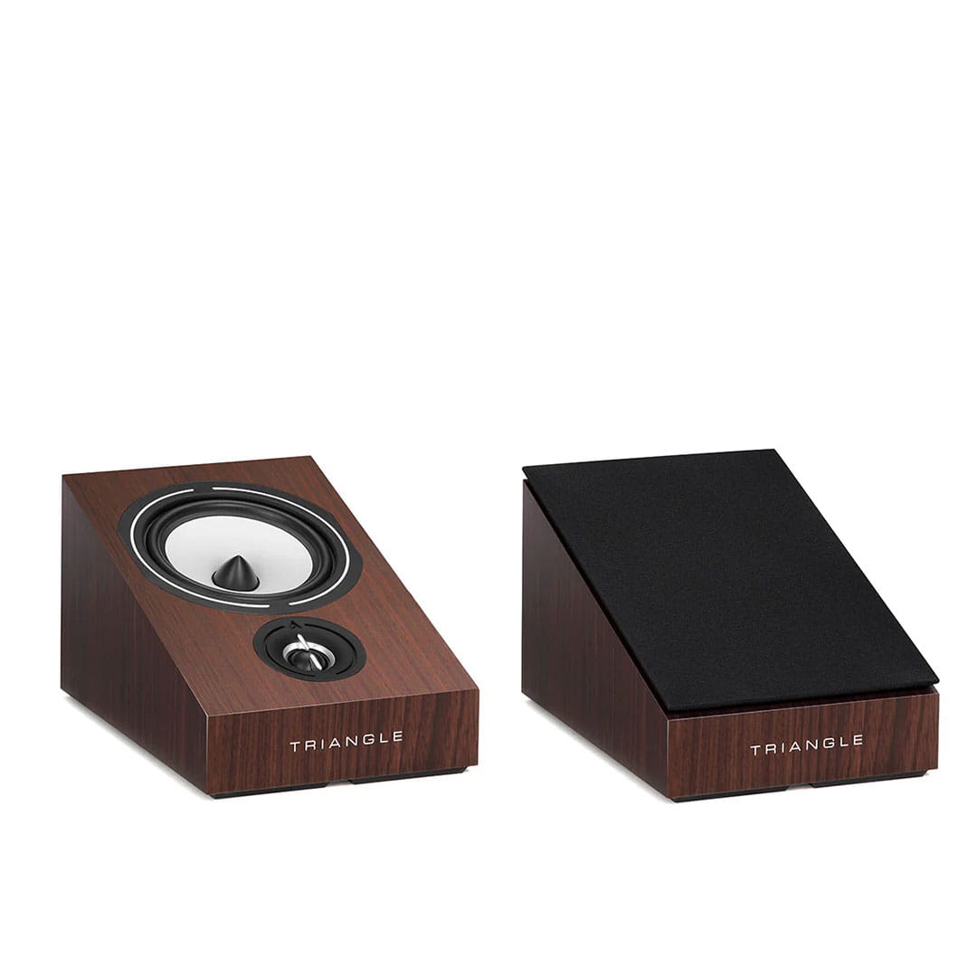 - W efektach poziomych: głośniki umieszczane są na tylnej i bocznych ścianach dzięki dedykowanemu systemowi mocowania. TRIANGLE Borea BRA1, z pochylonym frontem, umożliwia precyzyjne i bezpośrednie kierowanie fal dźwiękowych w stronę słuchacza.