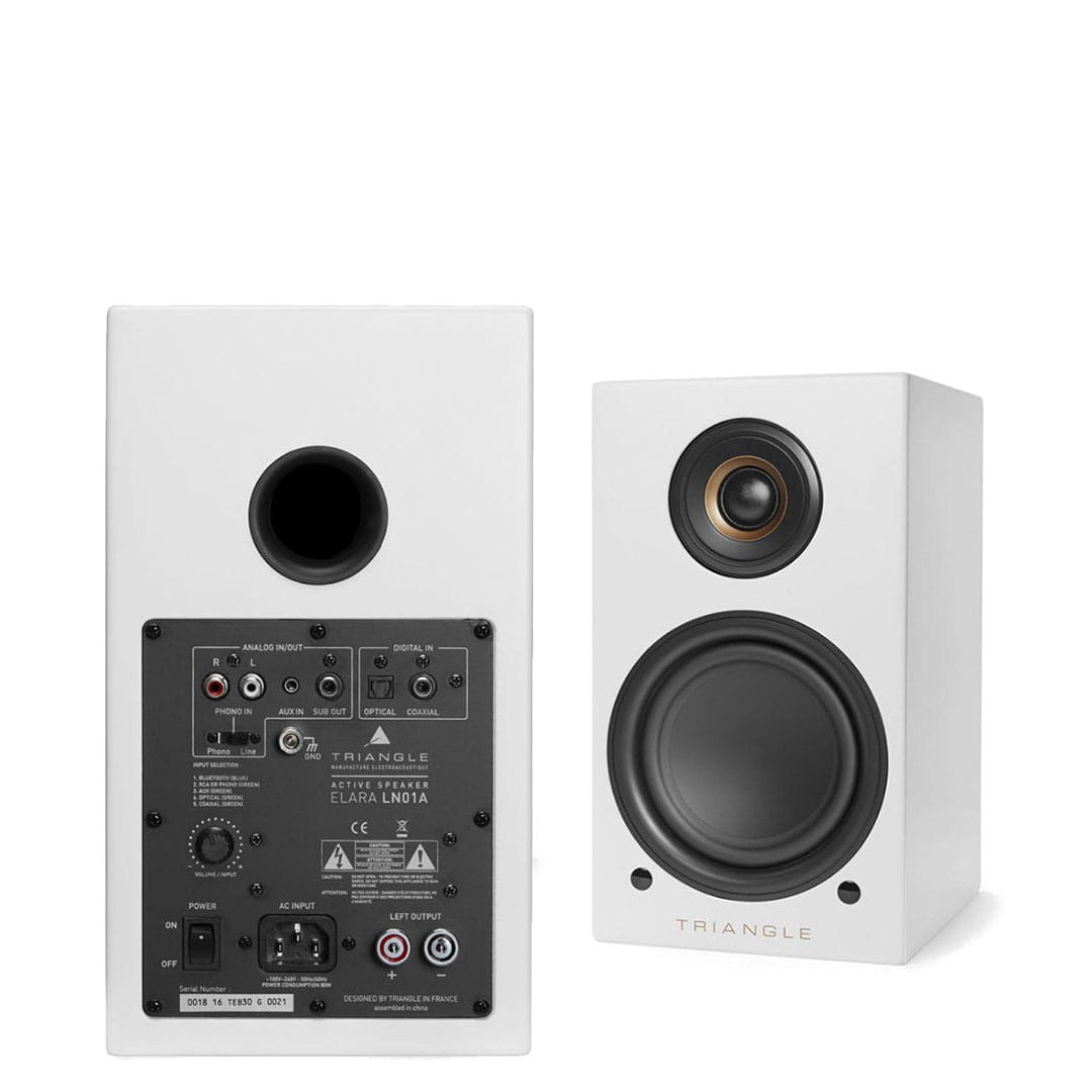 Bezprzewodowe, aktywne, półkowe kolumny głośnikowe TRIANGLE LN01A nie muszą wybierać między jakością dźwięku a łatwością obsługi, ponieważ oferują wysokiej jakości dźwięk stereo z minimalnymi ograniczeniami. Są wyposażone we wzmacniacz stereo 2 x 50 Watt klasy D i posiadają szeroki zakres złączy, które spełnią wszystkie Twoje potrzeby. Obejmuje to również bezprzewodowe połączenie Bluetooth APTX 4.0 (jakości CD), gniazdo gramofonowe do podłączenia gramofonu, wejścia optyczne / koncentryczne i wyjście subwoofera. Kompaktowy zestaw kolumn głośnikowych o minimalistycznym wyglądzie TRIANGLE LN01A bazuje na całej akustycznej wiedzy tego francuskiego producenta. Zawierają one 25-milimetrowy kopułkowy głośnik wysokotonowy i wklęsły głośnik średniotonowy o średnicy 13 cm, zapewniający okrągły, ciepły i szczegółowy dźwięk, unikalny dla TRIANGLE. Są one dostarczane z pilotem zdalnego sterowania, kablem zasilającym i kablem głośnika stereo.